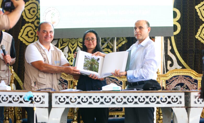 تسلّم اللواء دكتور علاء عبدالمعطي، محافظ كفرالشيخ، «أطلس نخيل البلح والتمور في مصر» من وفد منظمة الأغذية والزراعة للأمم المتحدة «FAO»، وذلك في إطار التعاون المثمر بين المنظمة والمحافظة لدعم قطاع النخيل والتمور والحفاظ على الأصناف المصرية الأصيلة.