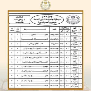 وزير التربية والتعليم يعتمد جدول إمتحانات شهادة إتمام الثانوية العامة للدور الأول 2026
