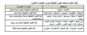 أولًا .. الفنون الجميلة “شعبة الفنون” بجامعات(حلوان – الإسكندرية – المنيا – جنوب الوادي – المنصورة – أسيوط – الأقصر).
