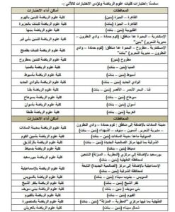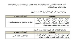 بعد ذلك تظهر للطالب قائمة بأنواع اختبارات القدرات المُتاحة له، والكليات، والأماكن المُخصصة لأداء هذه الاختبارات، والمواعيد المُحددة.