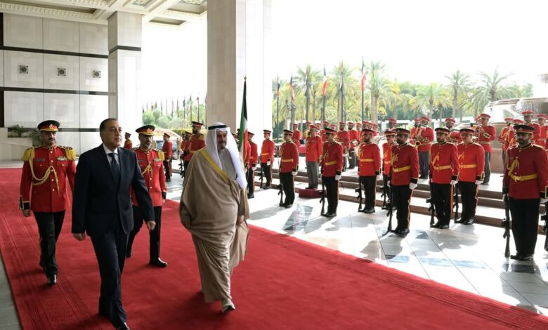 ولدى وصول الدكتور مصطفى مدبولي إلى مقر انعقاد جلسة المباحثات، جرت مراسم الاستقبال الرسمية، بتشريف رئيس مجلس الوزراء الكويتي، حيث تم عزف السلامين الوطنيين لمصر والكويت، واستعراض حرس الشرف. وحضر مراسم الاستقبال من الجانب الكويتي؛ كل من معالي السيد شريدة عبدالله المعوشرجي، نائب رئيس مجلس الوزراء، وزير الدولة لشئون مجلس الوزراء (رئيس بعثة الشرف)، ومعالي السيد عبدالعزيز دخيل الدخيل، رئيس ديوان رئيس مجلس الوزراء، ومعالي السيد عبدالله علي اليحيا، وزير الخارجية، ومعالي المهندسة نورة سليمان الفصام، وزيرة المالية، وزيرة الدولة للشئون الاقتصادية والاستثمار، وعددٍ من كبار المسئولين بدولة الكويت، وبحضور السفير المصرى بالكويت، أسامة شلتوت.