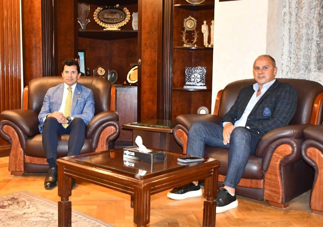 وزير الرياضة يلتقي رئيس بريزنتيشن لايف لبحث إقامة معسكر للجودو بالعلمين اقامه بعض الفاعليات الرياضيه المصاحبه وتنظيم فعاليات ٣٠ يوم تحدي