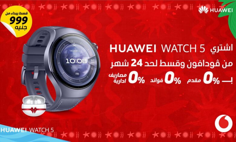 وقد أعلنت هواوي عن إطلاق HUAWEI Watch 5 حصريًا عبر ڤودافون . وبمناسبة الإطلاق، يحصل العملاء عند شراء الساعة على هدية مجانية هي HUAWEI FreeBuds 6i. كما توفر ڤودافون خطط تقسيط تصل إلى 24 شهرًا بدون فوائد، وبدون مصاريف إدارية، وبدون دفعة مقدمة، مما يتيح تجربة شراء أكثر سهولة ومرونة للعملاء.