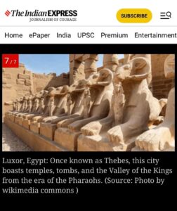 اختار موقع The Indian Express مدينة الأقصر ضمن القائمة التي أعدها لأعرق ست مدن في العالم تستحق الزيارة، وذلك في تقريره الصادر تحت عنوان “أعرق ست مدن في العالم تستحق الزيارة”.