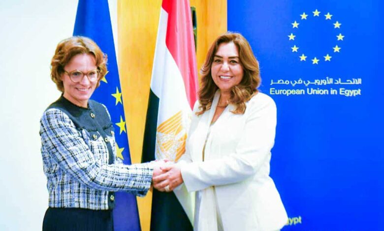 إلتقت الدكتورة منال عوض وزيرة التنمية المحلية والقائم بأعمال وزير البيئة والسيدة جيسيكا روزويل مفوضة البيئة بالاتحاد الأوروبي، بحضور السيدة أنجلينا أيخهورست سفيرة الإتحاد الأوروبي بالقاهرة، لبحث تعزيز التعاون المشترك في مواجهة التحديات البيئية وتعزيز الاقتصاد الدائري، وذلك على هامش مشاركتها فى فعاليات أسبوع القاهرة الثامن للمياه الذى يعقد خلال الفترة من 12إلى ١٦ أكتوبر الجاري، تحت شعار “حلول مبتكرة من أجل الصمود المناخي واستدامة المياه”.