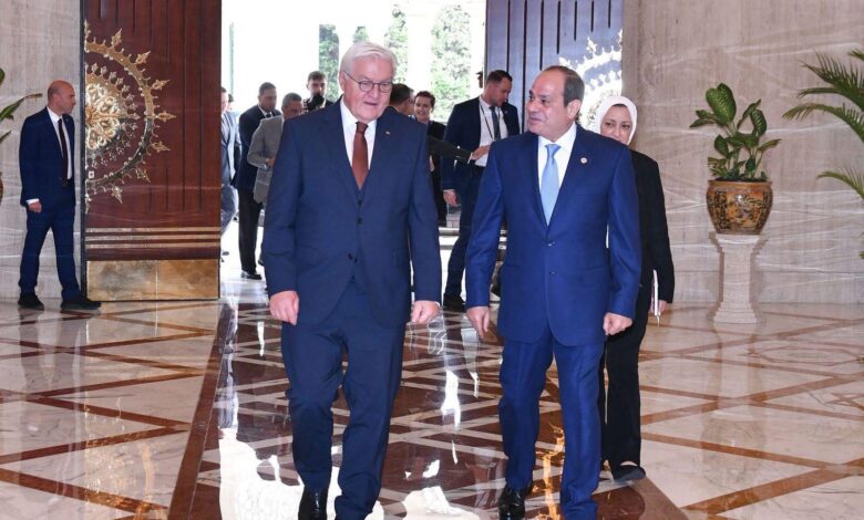 وصرح المتحدث الرسمي باسم رئاسة الجمهورية بأن السيد الرئيس رحّب بالرئيس الألماني في زيارته إلى مصر، معرباً عن تقديره البالغ لمشاركته في مراسم افتتاح المتحف المصري الكبير، ومثمّناً حرصه على تلبية الدعوة، بما يجسّد عمق العلاقات التاريخية والروابط الوثيقة التي تجمع بين مصر وألمانيا. من جانبه، عبّر الرئيس الألماني عن تهنئته للسيد الرئيس وللشعب المصري بمناسبة افتتاح المتحف، مؤكداً أن هذا الإنجاز الحضاري يعكس عظمة التاريخ المصري ومكانة مصر الراسخة في سجل الإنسانية، ومعرباً عن اعتزازه بالمشاركة في هذا الحدث الثقافي البارز.